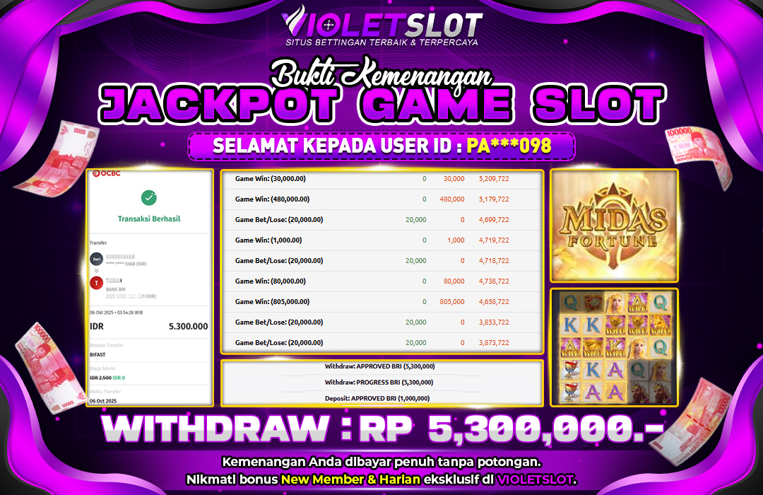 Selamat Kepada Member UNGUTOTO PA****98 Telah Jackpot Di MIDAS FORTUNE