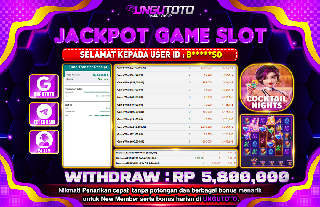 UNGUTOTO JACKPOT SLOT PG SOFT COCKTAIL NIGHTS Rp.5.800.000 LUNAS