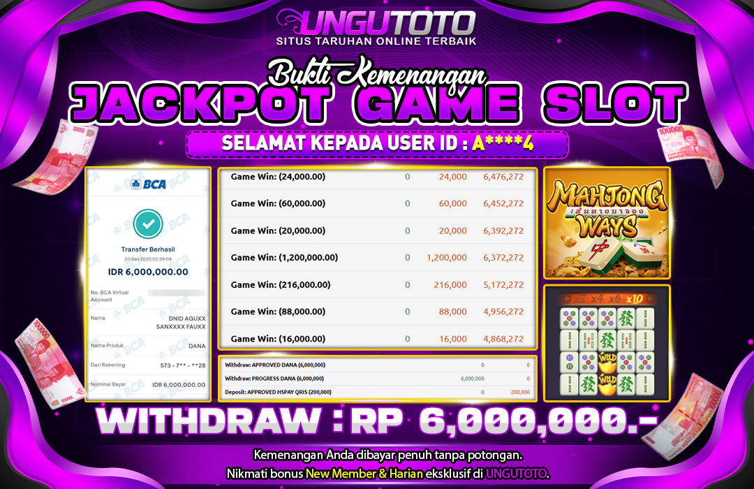 UNGUTOTO JACKPOT MAHJONG WAYS Rp.6.000.000 LUNAS