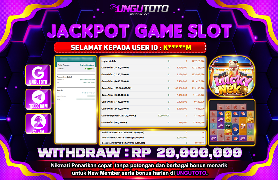 UNGUTOTO JACKPOT LUCKY NEKO Rp.20.000.000 LUNAS